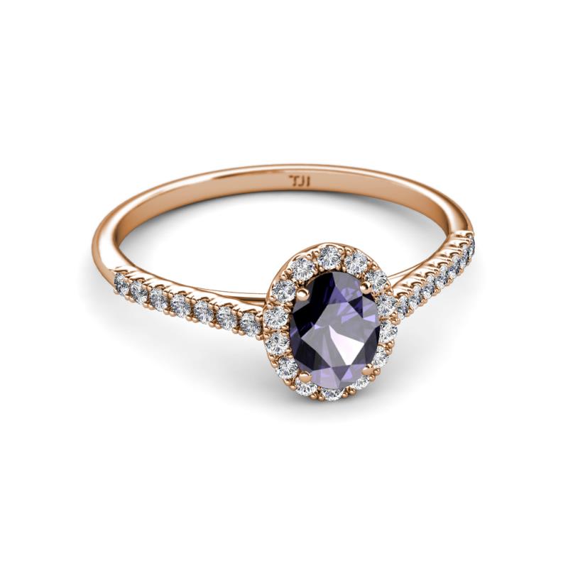 Oval Cut (7x5 mm) Iolite and Diamond Womens Halo Engagement Ring 1.32 ctw 14K Rose Gold More Details ...