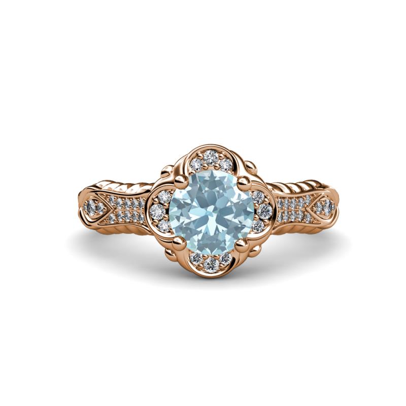 1 1/8 ctw Round Aquamarine and Diamond Floral Womens Halo Engagement Ring 18K Rose Gold More Details ...