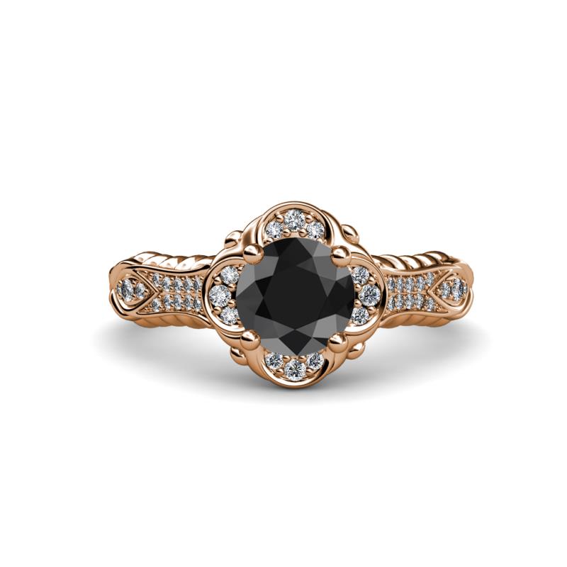 1 1/4 ctw Round Black and White Diamond Floral Womens Halo Engagement Ring 14K Rose Gold More Details ...