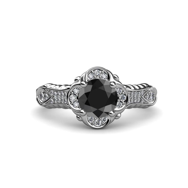 1 1/4 ctw Round Black and White Diamond Floral Womens Halo Engagement Ring Platinum More Details ...