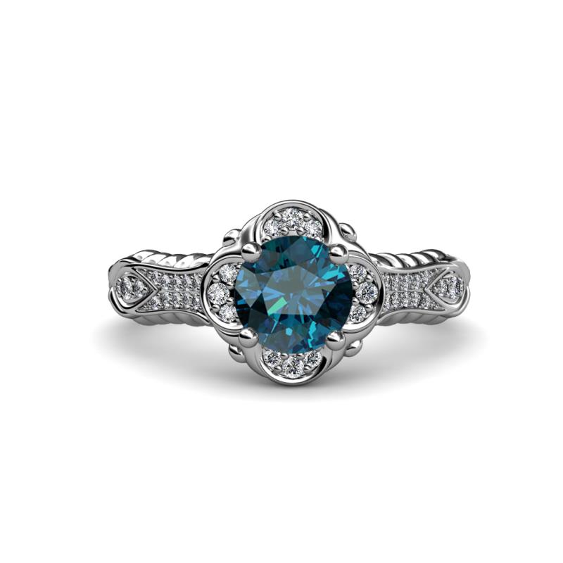 1 1/4 ctw Round Blue and White Diamond Floral Womens Halo Engagement Ring 14K White Gold More Details ...
