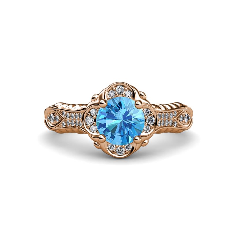 1 1/5 ctw Round Blue Topaz and Diamond Floral Womens Halo Engagement Ring 18K Rose Gold More Details ...