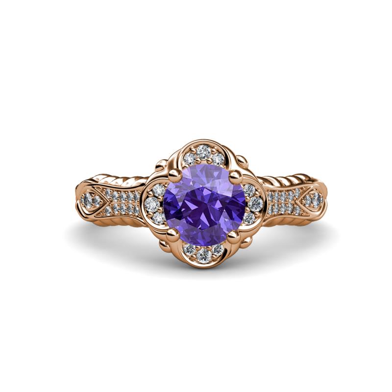 1 1/8 ctw Round Iolite and Diamond Floral Womens Halo Engagement Ring 18K Rose Gold More Details ...
