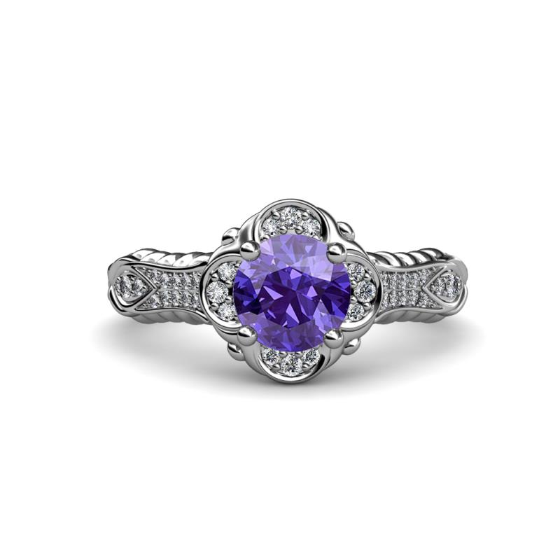 1 1/8 ctw Round Iolite and Diamond Floral Womens Halo Engagement Ring Platinum More Details ...