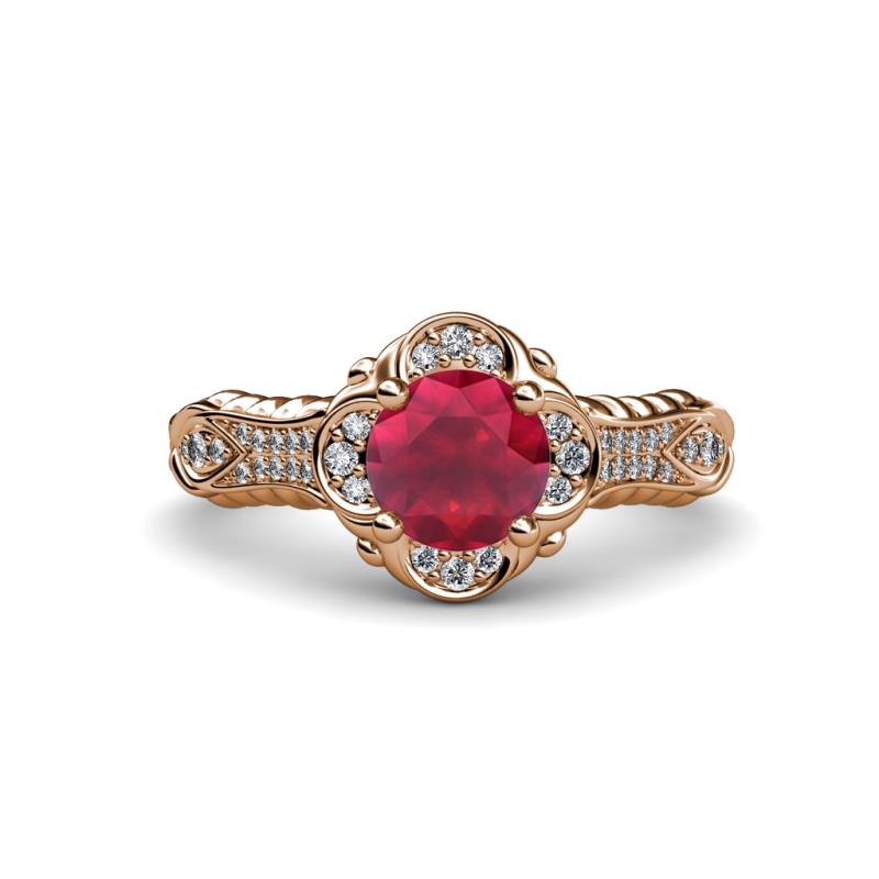 1 1/5 ctw Round Ruby and Diamond Floral Womens Halo Engagement Ring 18K Rose Gold More Details ...