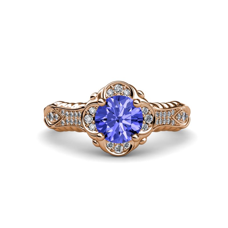 A vintage inspired ring with Center Tanzanite crowned on floral halo of mined Diamonds while additional mined Diamonds and exquisitely elaborated bubble cable design adorn the shoulders & side, adding to the truly mesmerizing look.