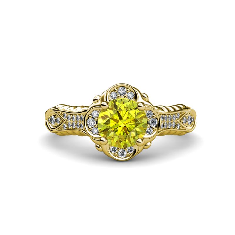 1 1/4 ctw Round Yellow and White Diamond Floral Womens Halo Engagement Ring 14K Yellow Gold More Details ...