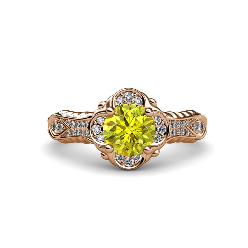 A vintage inspired ring with Center Yellow Diamond crowned on floral halo of White Diamonds while additional White Diamonds and exquisitely elaborated bubble cable design adorn the shoulders & side, adding to the truly mesmerizing look.