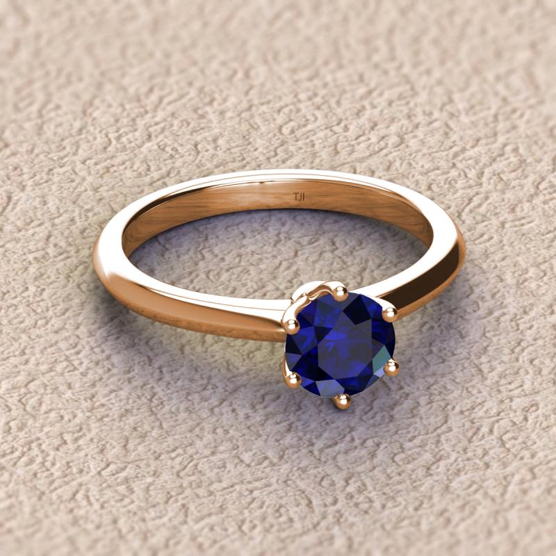 This glamorous solitaire engagement ring in 14K Rose Gold is designed with a modern knife edge style to hold the center Blue Sapphire with Six Prongs setting for a beautiful look.