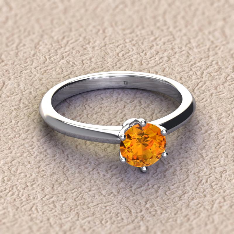 Round Citrine 0.87 ctw Knife Edge Six Prong Womens Solitaire Engagement Ring 14K White Gold More Details ...