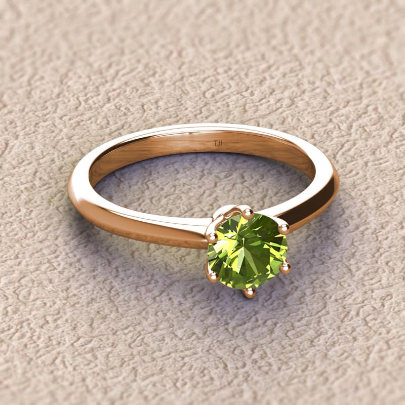 This glamorous solitaire engagement ring in 18K Rose Gold is designed with a modern knife edge style to hold the center Peridot with Six Prongs setting for a beautiful look.