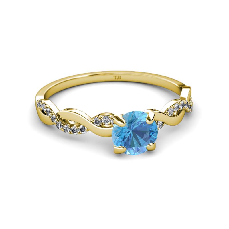 Get a meaningful Ring with Center Blue Topaz symbolizing your love, crowned upon the shank which twist together with Diamond ribbon forming infinity sign, indicating your unending love.