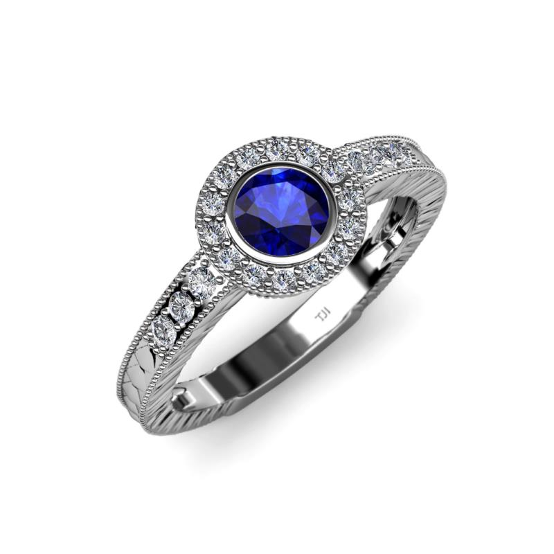 Blue Sapphire and Diamond Engraved Womens Halo Engagement Ring 0.77 ctw 14K White Gold More Details ...