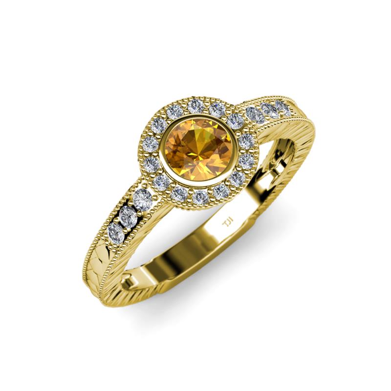 Citrine and Diamond Engraved Womens Halo Engagement Ring 0.64 ctw 14K Yellow Gold More Details ...