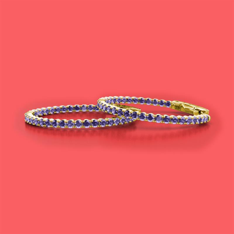 Round Iolite 1.80 ctw Four Prong Inside Outside Women Eternity Hoop Earrings 18K Yellow Gold More Details ...