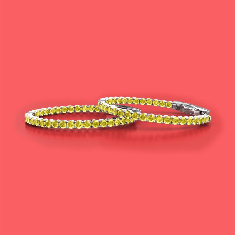 These are Beautiful Set of Hoop Earrings with Four Prong Round Yellow Sapphire set Inside and Outside giving it more Classy and Stylish Look.