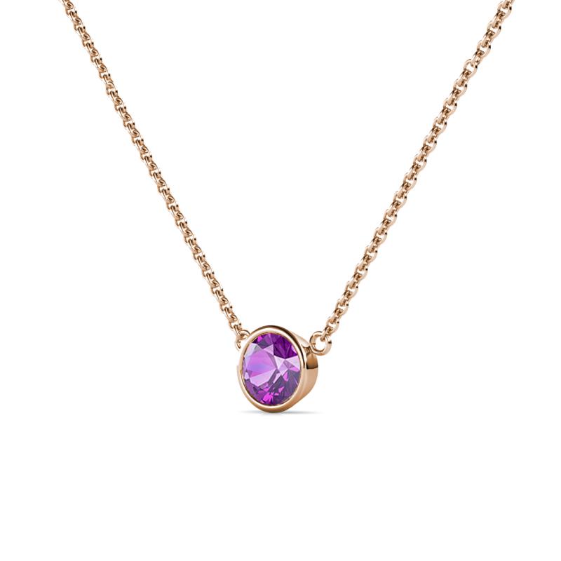 Round Amethyst Bezel Set Womens Solitaire Pendant Necklace 0.40 ct 14K Rose Gold.Included 16 Inches 14K Rose Gold Chain. More Details ...