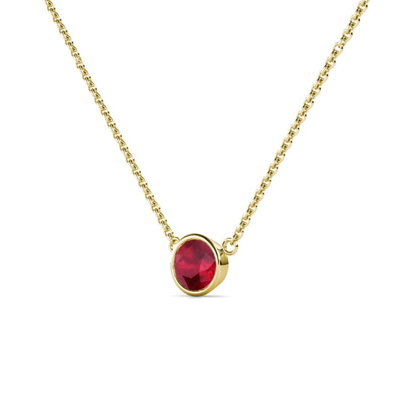 Round Ruby Bezel Set Womens Solitaire Pendant Necklace 0.42 ct 14K Yellow Gold.Included 16 Inches 14K Yellow Gold Chain. More Details ...