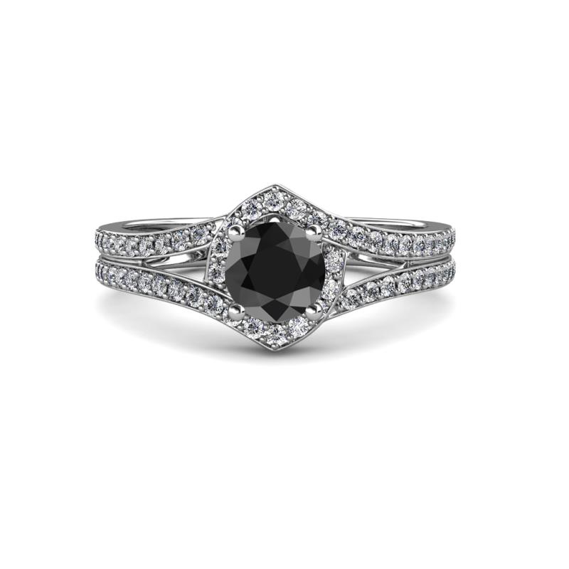 1 1/3 ctw Round Black and White Diamond Split Shank Womens Engagement Ring 18K White Gold More Details ...