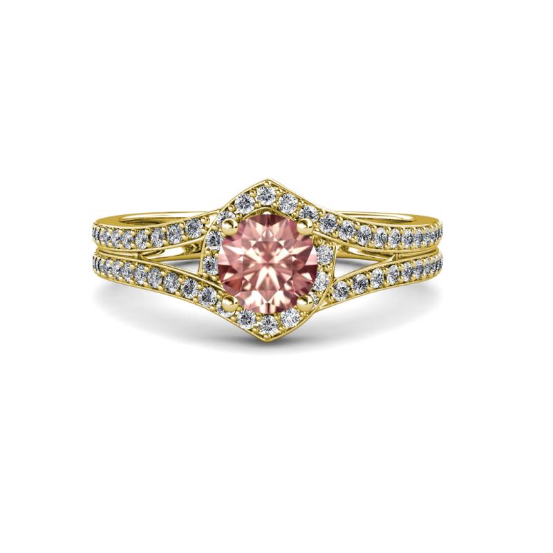 1 1/10 ctw Round Morganite and Diamond Split Shank Womens Engagement Ring 18K Yellow Gold More Details ...