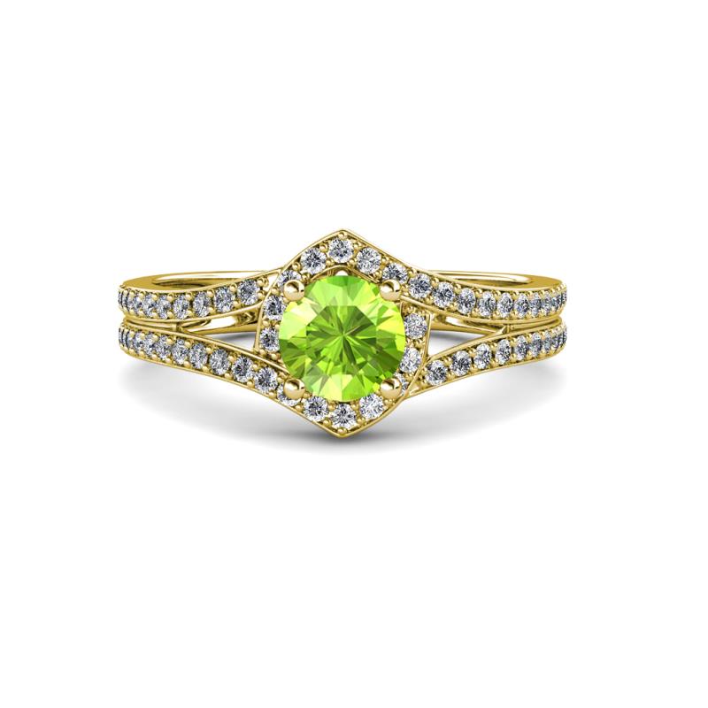 1 1/8 ctw Round Peridot and Diamond Split Shank Womens Engagement Ring 18K Yellow Gold More Details ...