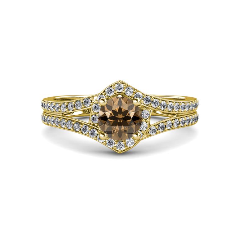 This Art Deco Peg Head Engagement Ring is designed with 4 Prong Round Center Smoky Quartz and two row open Split Bypass Shank with Pave Set Diamonds will definitely sweep your love her off her feet.