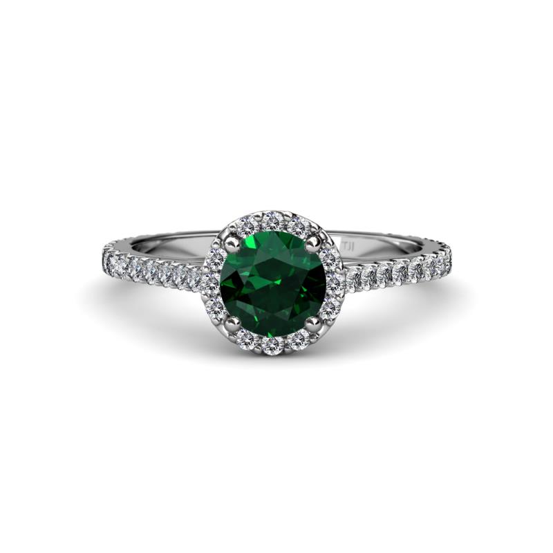Emerald and Diamond Womens Halo Engagement Ring 1.37 ctw 14K White Gold More Details ...