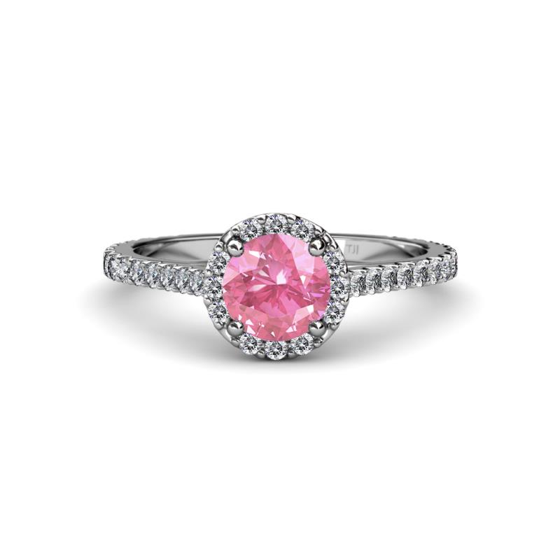 Pink Tourmaline and Diamond Womens Halo Engagement Ring 1.62 ctw 14K White Gold More Details ...