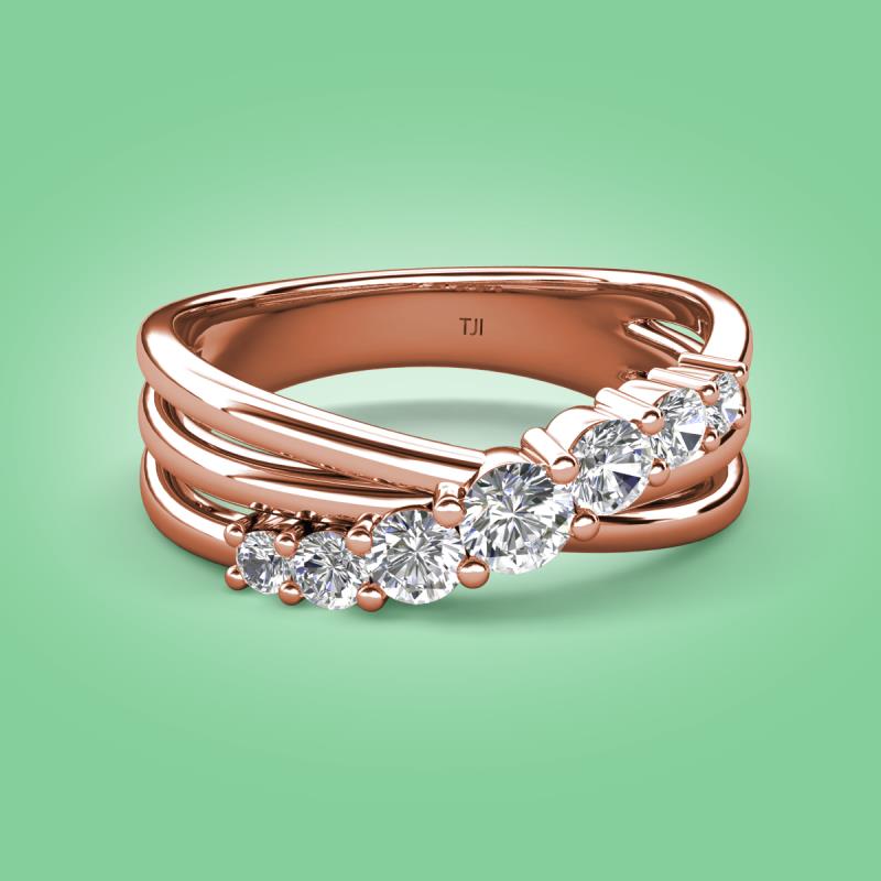 0.53 ctw White Sapphire Crossover 7 Stone Prong Set Women Stackable Wedding Band 18K Rose Gold More Details ...