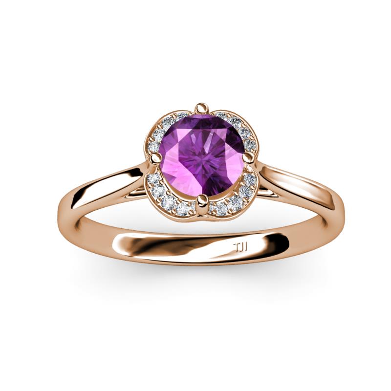 Round Amethyst and Diamond 0.93 ctw Womens Halo Engagement Ring 14K Rose Gold More Details ...