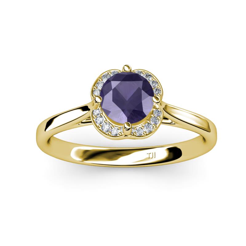 Round Iolite and Diamond 0.86 ctw Womens Halo Engagement Ring 14K Yellow Gold More Details ...