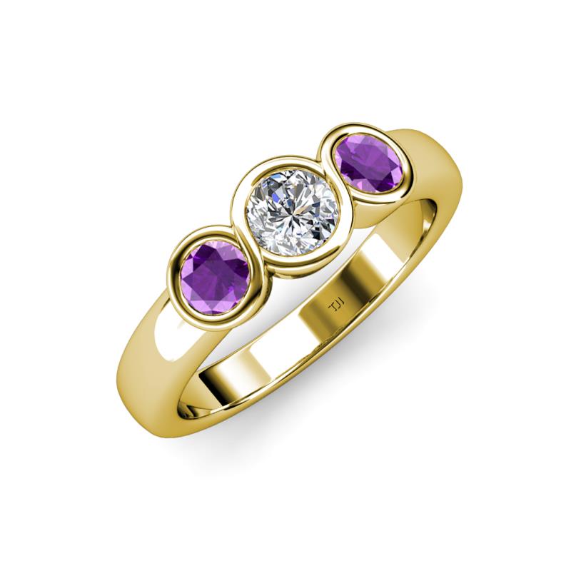 Amethyst and Lab Grown Diamond Infinity Womens Three Stone Engagement Ring 0.90 ctw 18K Yellow Gold More Details ...