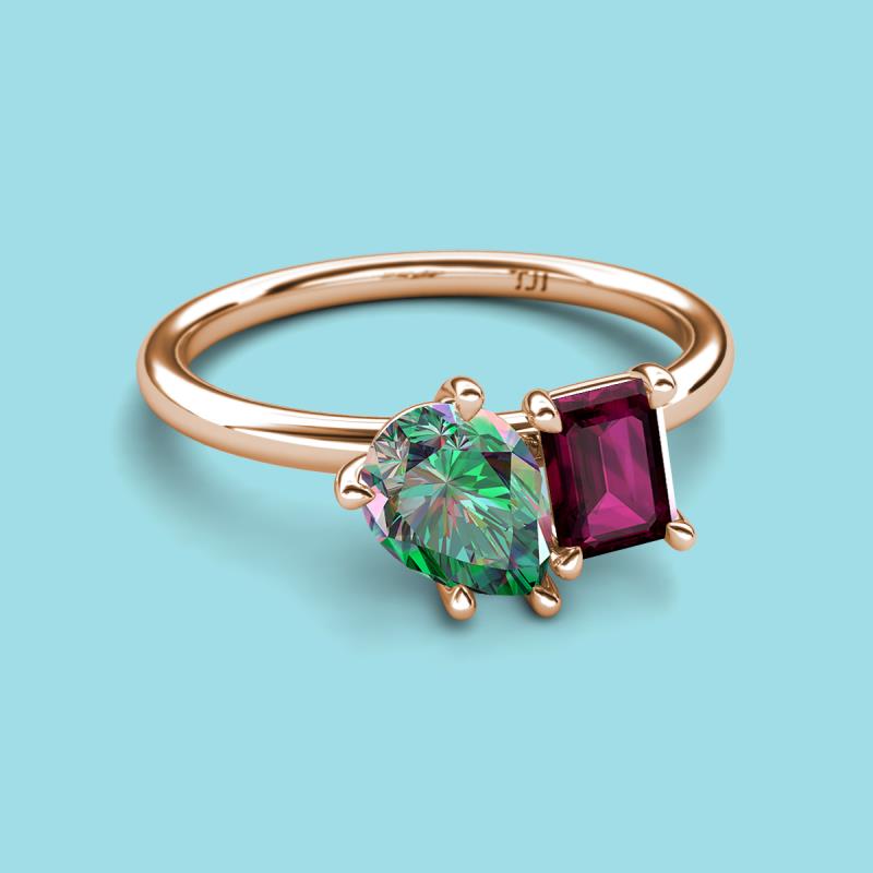 Pear Shape Lab Created Alexandrite & Emerald Shape Rhodolite Garnet 2.93 ctw Four Prong Womens 2 Stone Duo Engagement Ring 18K Rose Gold More Details ...