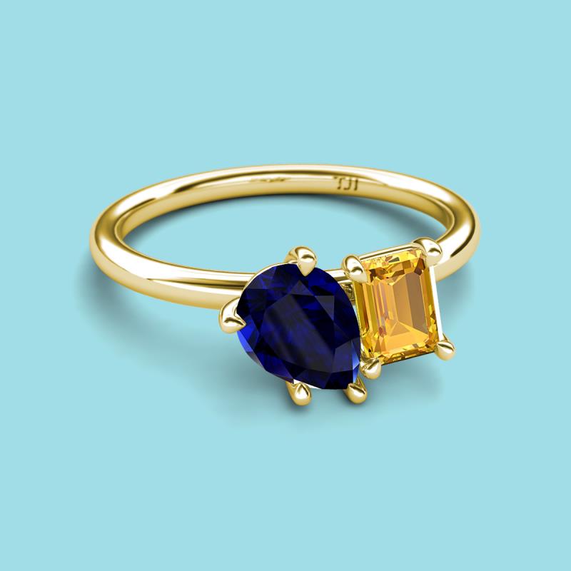 Find a beautiful symbol of everlasting love, with our new collection of duo two-stone ring. A pair of Pear Shape Lab Created Blue Sapphire shimmering alongside of a luminous Emerald Shape Citrine crafted beautifully is all set to represent two of you together.