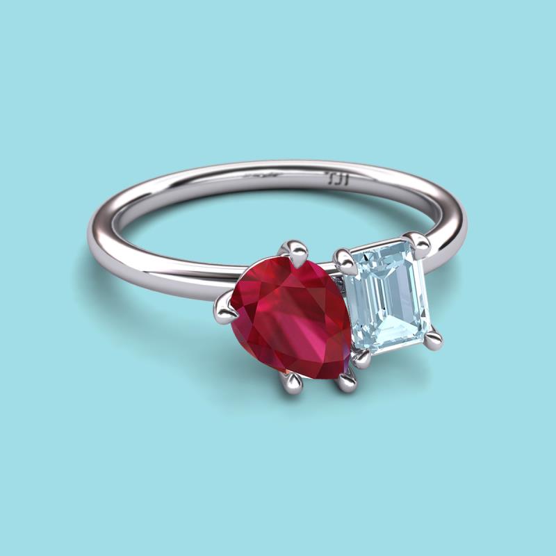 Pear Shape Lab Created Ruby & Emerald Shape Aquamarine 2.53 ctw Four Prong Womens 2 Stone Duo Engagement Ring 18K White Gold More Details ...