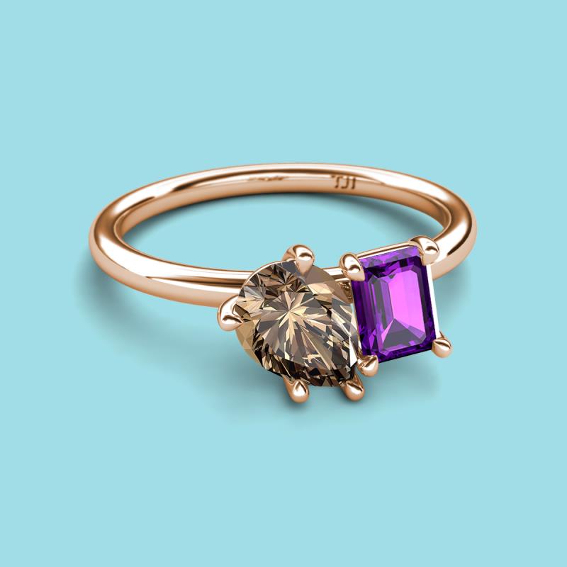 Pear Shape Smoky Quartz & Emerald Shape Amethyst 2.00 ctw Four Prong Womens 2 Stone Duo Engagement Ring 18K Rose Gold More Details ...