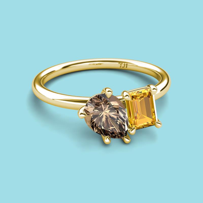 Pear Shape Smoky Quartz & Emerald Shape Citrine 2.10 ctw Four Prong Womens 2 Stone Duo Engagement Ring 14K Yellow Gold More Details ...