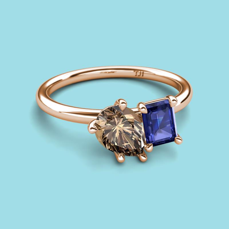 Pear Shape Smoky Quartz & Emerald Shape Iolite 2.15 ctw Four Prong Womens 2 Stone Duo Engagement Ring 18K Rose Gold More Details ...