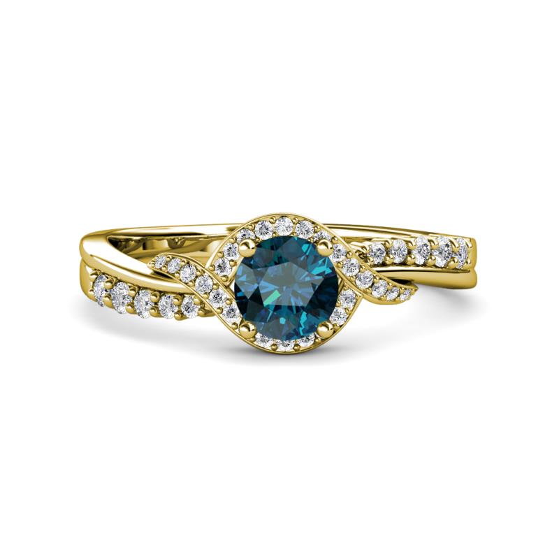 1 1/4 ctw Round Blue and White Diamond Bypass Womens Engagement Ring 18K Yellow Gold More Details ...