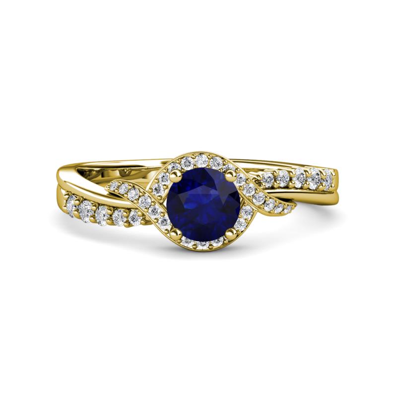 1 1/3 ctw Round Blue Sapphire and Diamond Bypass Womens Engagement Ring 14K Yellow Gold More Details ...