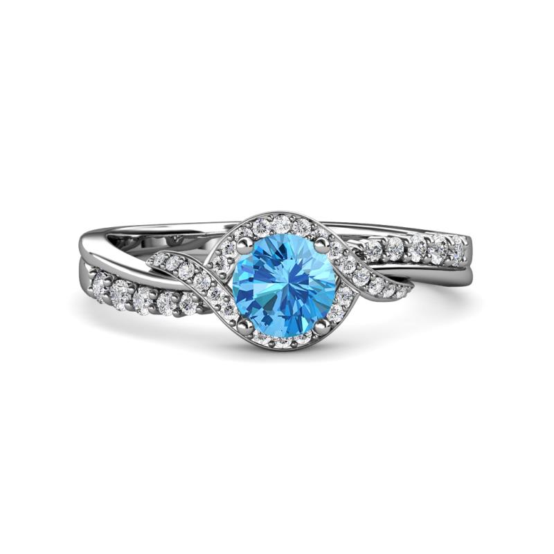 1 1/4 ctw Round Blue Topaz and Diamond Bypass Womens Engagement Ring 18K White Gold More Details ...