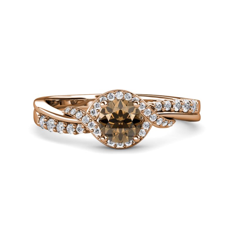 1 1/6 ctw Round Smoky Quartz and Diamond Bypass Womens Engagement Ring 14K Rose Gold More Details ...