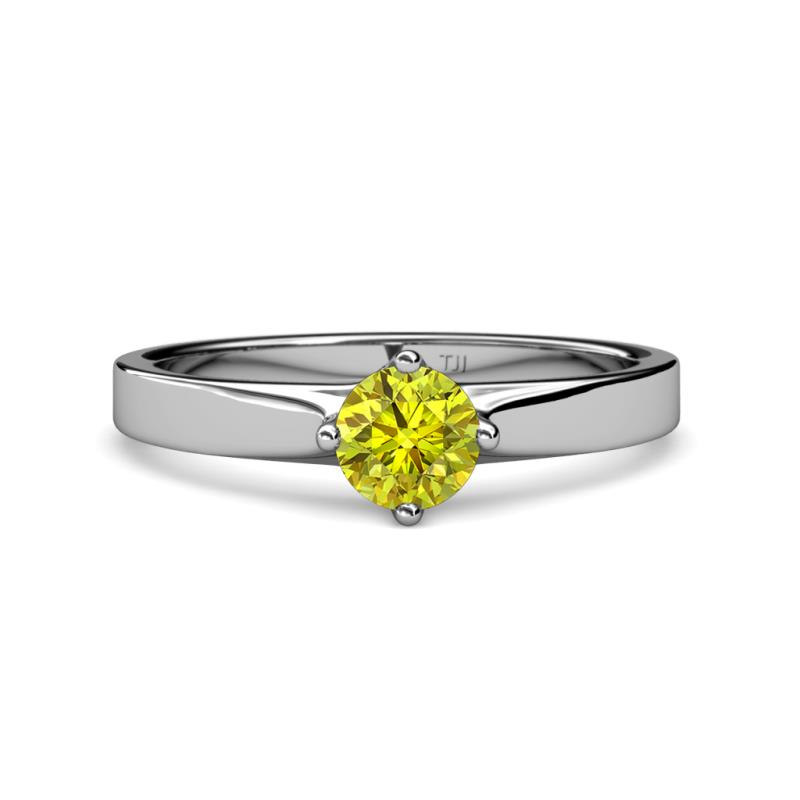 • 1 Round Yellow Diamond of 1 ct/6.5 mm set using Prong Setting in 14K White Gold.