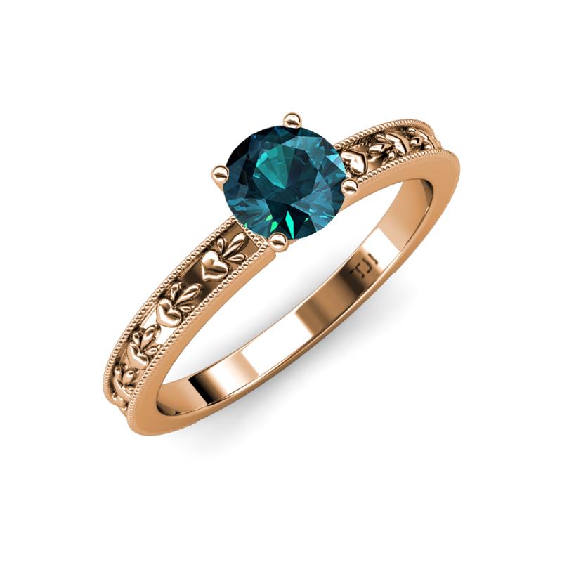 Round Blue Diamond Heart Embossed Milgrain Womens Solitaire Engagement Ring 0.90 ct 14K Rose Gold More Details ...