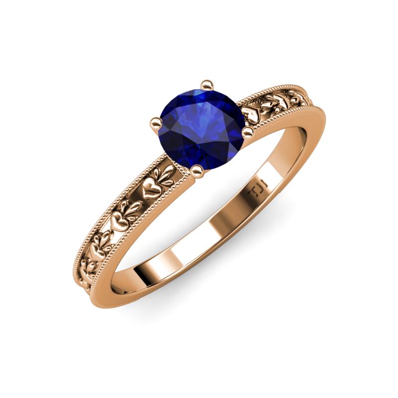 Round Blue Sapphire Heart Embossed Milgrain Womens Solitaire Engagement Ring 0.96 ct 14K Rose Gold More Details ...