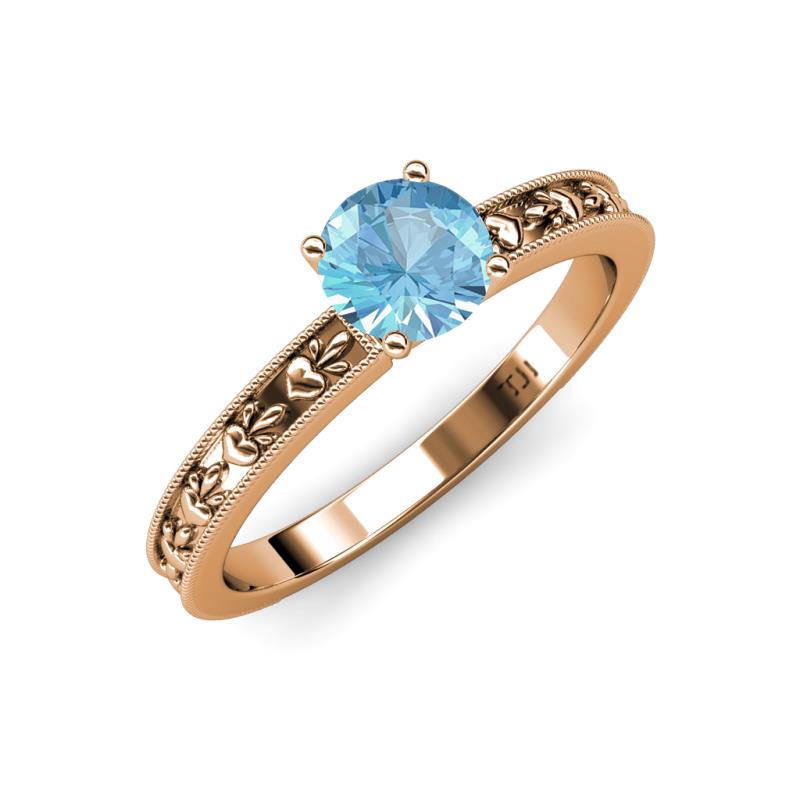 A perfect Ring to show your love and devotion, this Vintage inspired Blue Topaz Solitaire Engagement Ring features motif of embossed hearts all around the shank with milgrain edges.