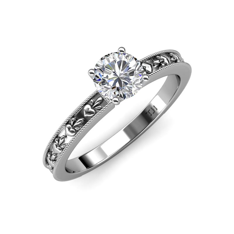 Round Certified Diamond Heart Embossed Milgrain Womens Solitaire Engagement Ring 1.00 ct 14K White Gold More Details ...