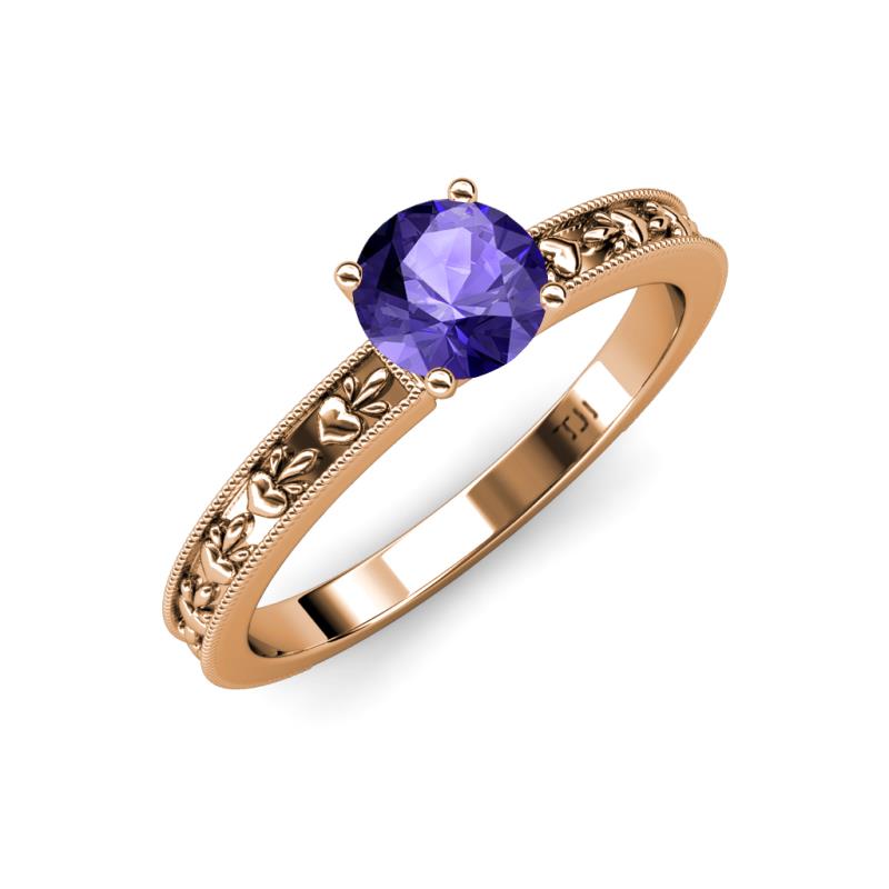 Round Iolite Heart Embossed Milgrain Womens Solitaire Engagement Ring 0.80 ct 14K Rose Gold More Details ...