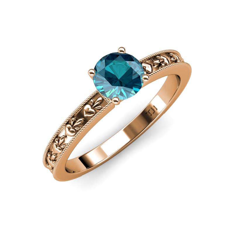 A perfect Ring to show your love and devotion, this Vintage inspired London Blue Topaz Solitaire Engagement Ring features motif of embossed hearts all around the shank with milgrain edges.
