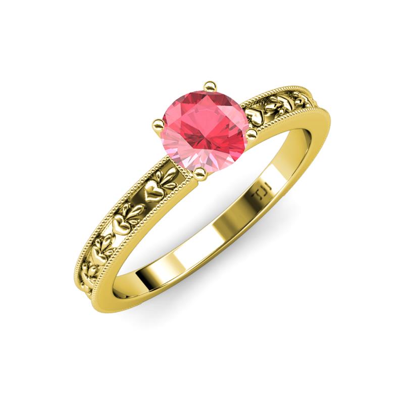 A perfect Ring to show your love and devotion, this Vintage inspired Pink Tourmaline Solitaire Engagement Ring features motif of embossed hearts all around the shank with milgrain edges.